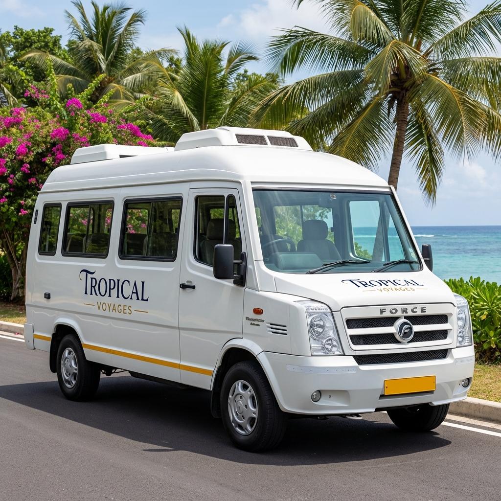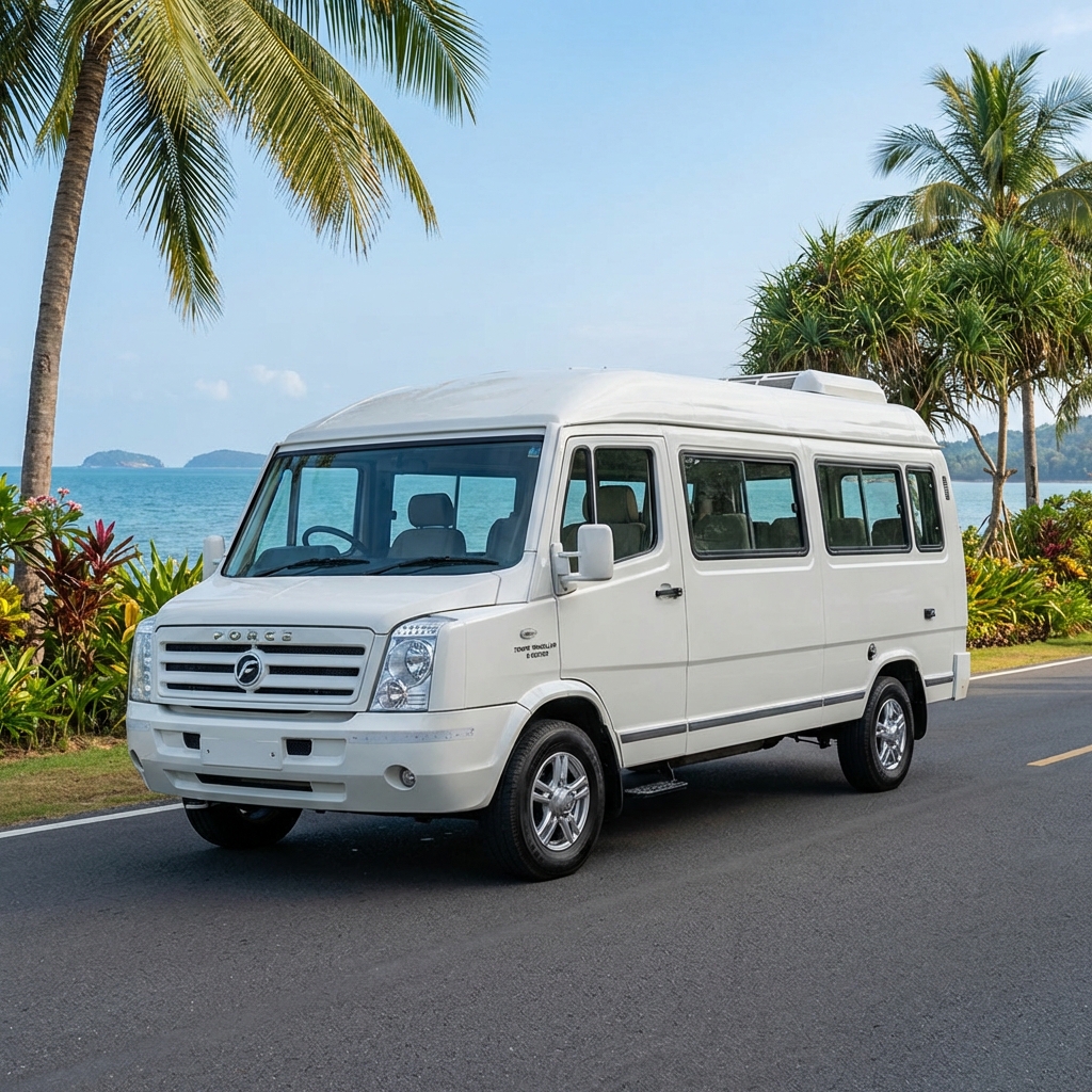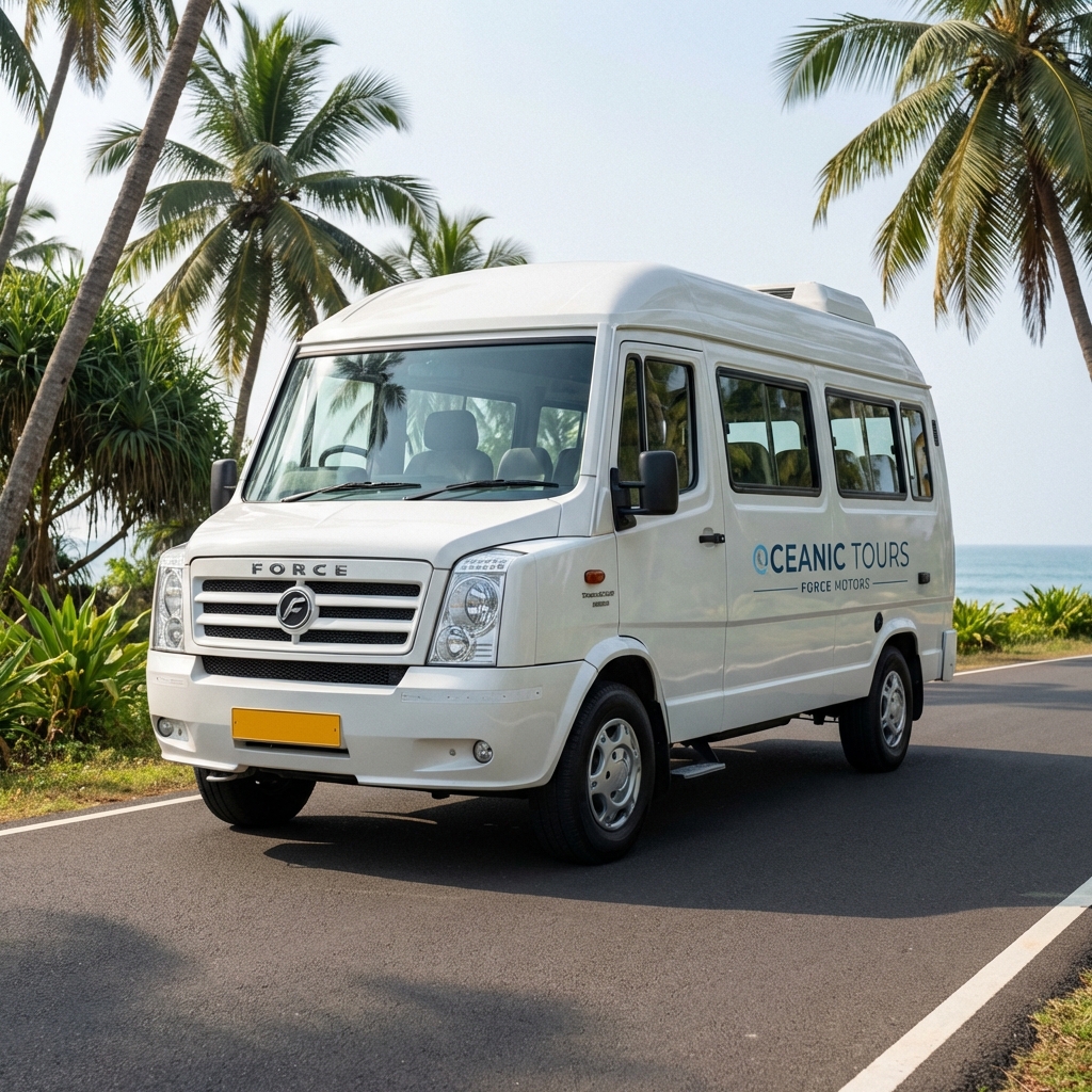 Spacious tempo traveler for group tours across Kerala.