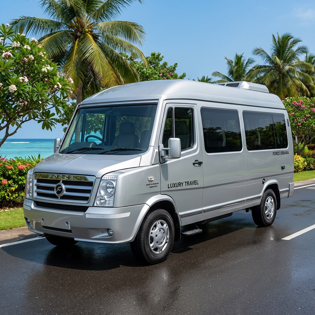 Spacious tempo traveler for group tours across Kerala.